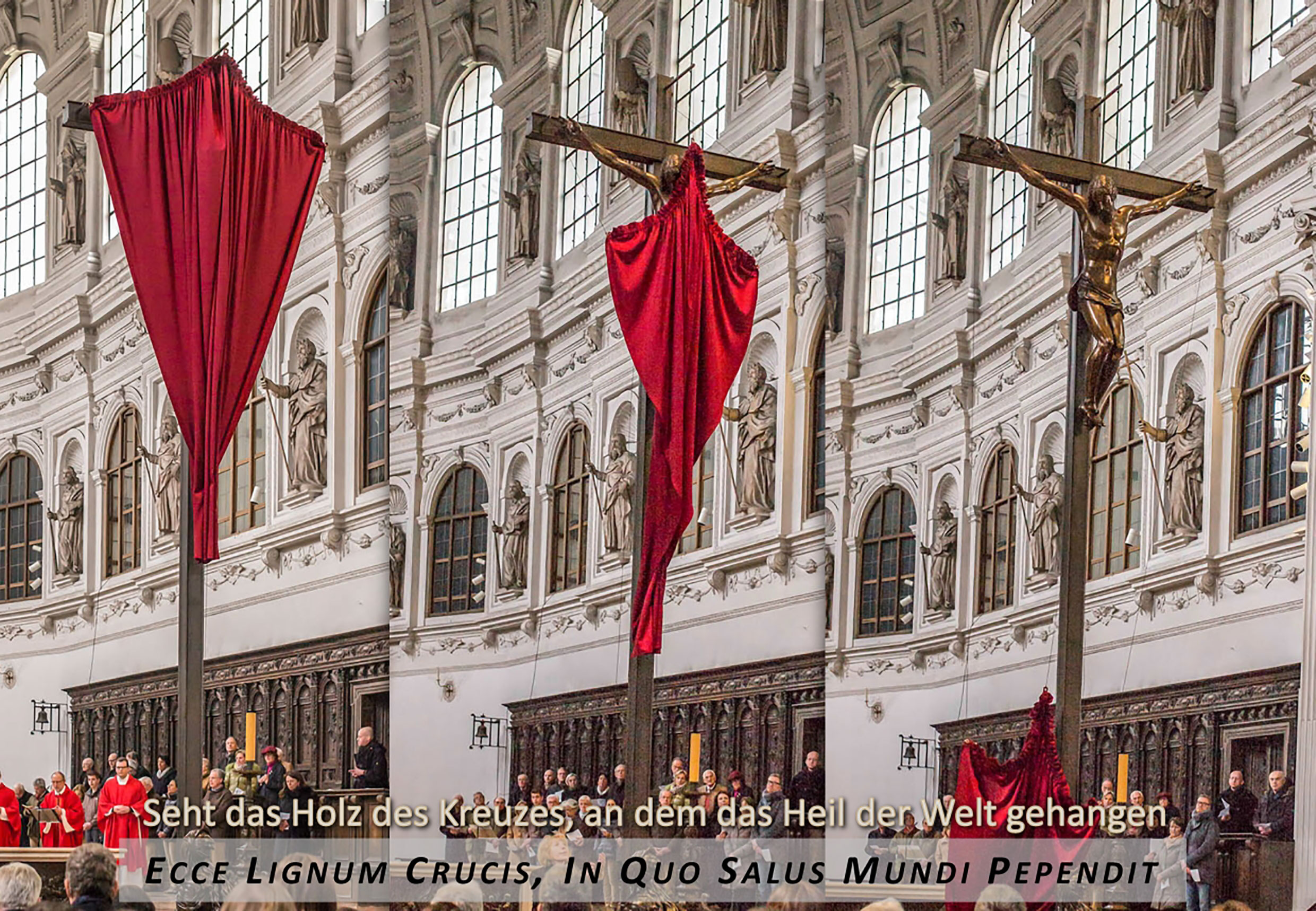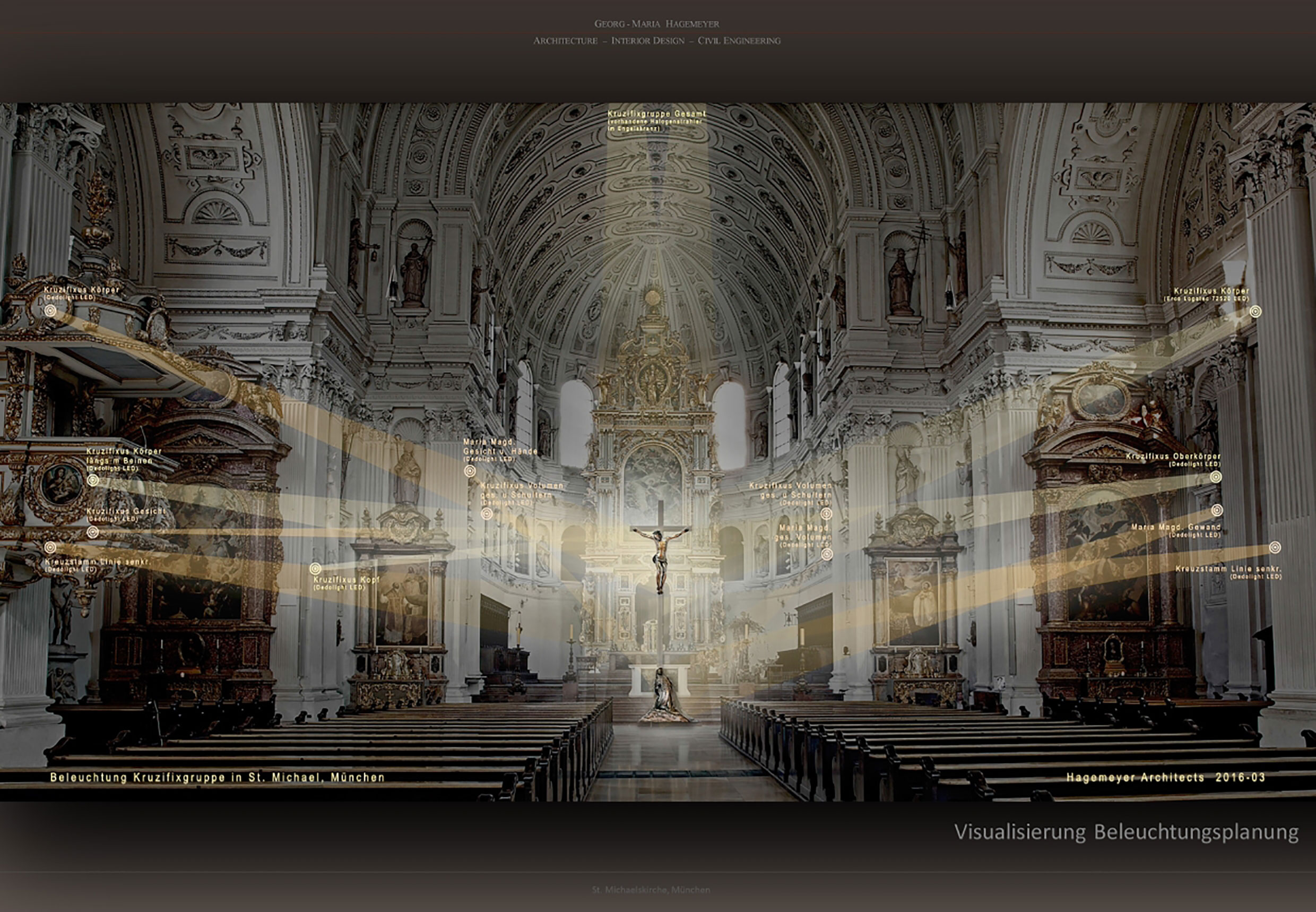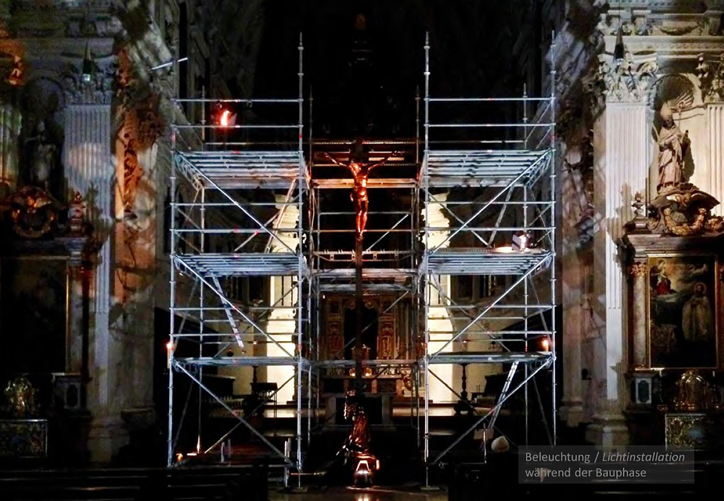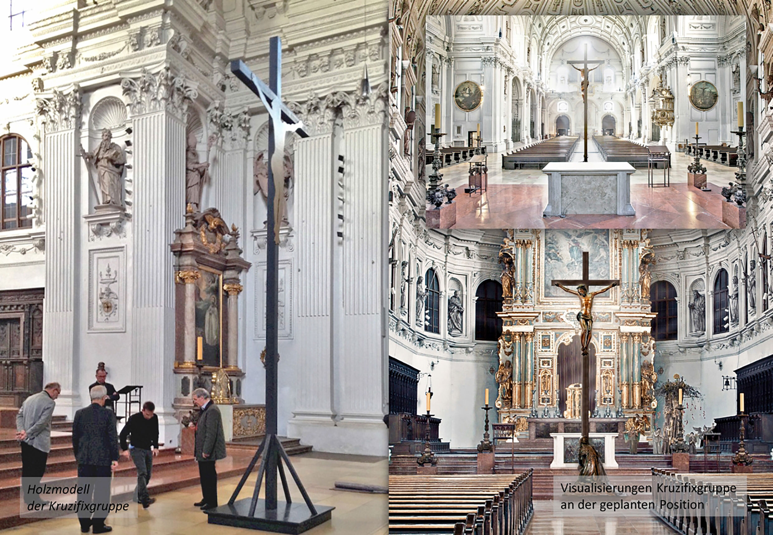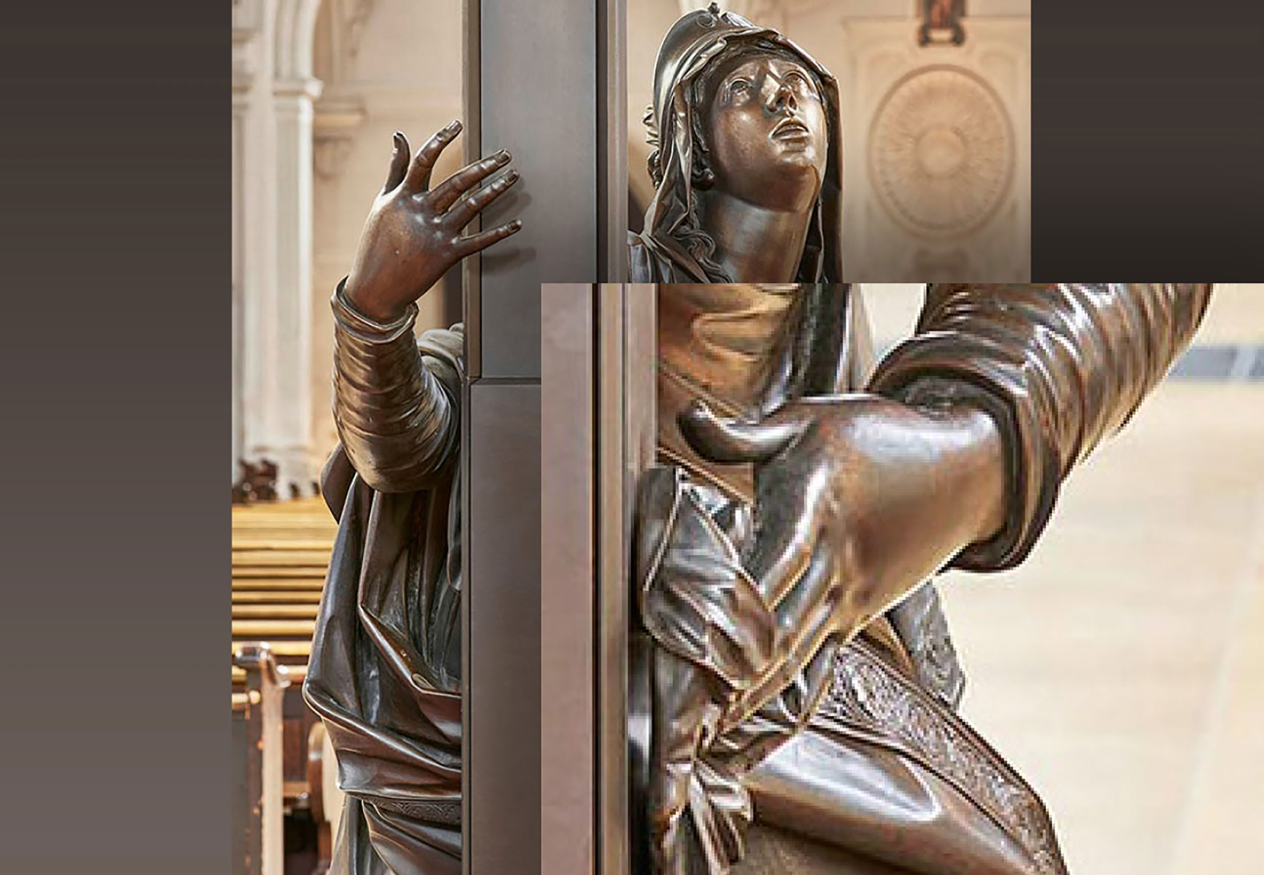 A new bronze-steel construction retrieves the Giambologna Crucifix and Maria-Magdalena to the middle of St. Michael church